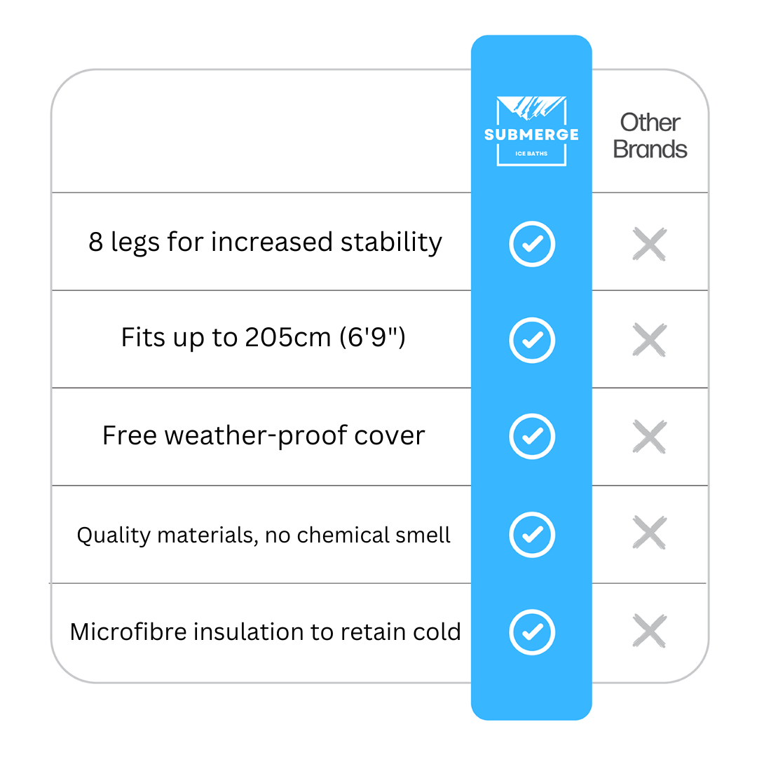 8 removable legs make this ice bath extra reinforced and capable of hosting people of any size.